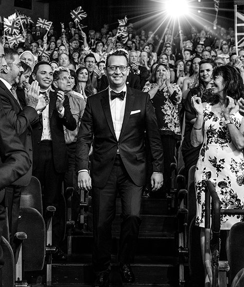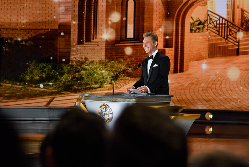 夜は音楽の巨匠のパフォーマンスで始まり、参加者は総立ちになりました。それは、まだ話されていない冒険が明かされる驚くような夜になる合図でした。 実際、Scientology宗教の教会指導者である、デビッド・ミスキャベッジ氏がステージへと登場する瞬間への世界クラスのいざないでした。彼は万雷の拍手喝采といつまでも続くスタンディングオベーションに迎えられました。