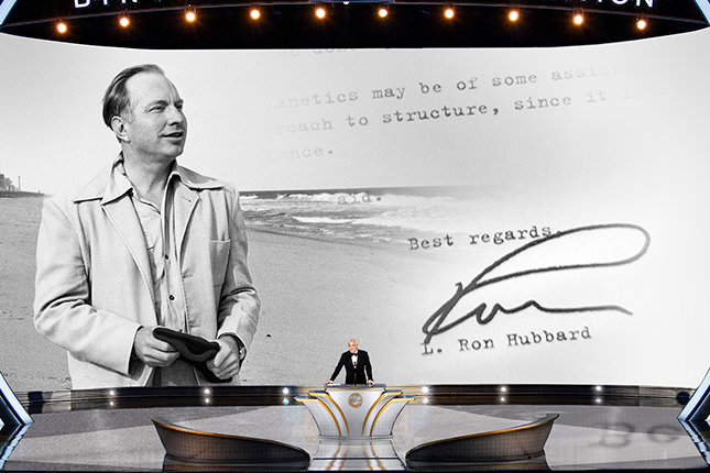 「L. ロン ハバードを称える夜にようこそ。 彼と知り合ったことはないということではありませんが、 今夜は形式を尊重する夜です。いくつかの基本から始めましょう。 この過去1年間を見ると、各地域における新しいScientology教会、また、大陸全体にわたって大きく前進するための新しい施設、そしてもちろん、決して忘れられることはない、まったく新しい2019年はもちろん。けれど、それは始まったばかりです。 手短に言うと、私たちの拡張は圧倒的で、もちろん、すべてはひとりの人間の人生と遺産から湧き出るものです…L. ロン ハバード。」