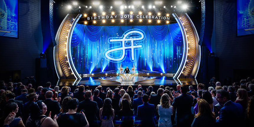 照明が点き、 レッド・カーペットが敷かれ、 カメラマンが瞬間を捉え、 多言語での興奮したおしゃべり、 活気とざわめき。 70ヵ国から何千人もの人々が、フロリダ州クリアウォーターのルース・エッカード・ホールに集結しました。 タキシードとドレスで着飾り、パーティーの準備万端でした。 それは盛大な毎年恒例のイベント、週末にわたる宗教の創設者、L. ロン ハバード (LRH)の誕生祝賀会でした。 祝うことがたくさんありました。歴史的なグランド・オープニングから、世界にわたる教会の成功物語、そして、Scientologyネットワークの次のシーズンをちょっとだけ覗いて...すべてはScientologyの拡張の規模を強調するものです。