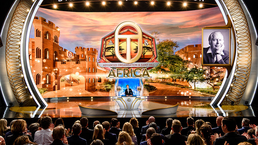 そして、ミスキャベッジ氏は次に、今年の拡張の最高の偉業、35年以上で初の新しい上級オーガニゼーションのオープニングを示しました。 ハイベルトを見下ろす22エーカーの荘厳な城の歴史的な落成式は、Scientologyの上級精神的レベルを、アフリカの地で初めて利用可能とし、それは、50年前に初めてハバード氏によって表現された夢を実現したものです。 プレゼンテーションは、一連の壮大な祝典で綴られました。国の高官たちが「私たちが愛するアフリカの目覚め」と挨拶をした豪華なグランド・オープニングから、記念となる部族の長たちの集会まで。 城は、オープンから数日内に、5つのアフリカの国からの14人の君主による「王座のサミット」コンベンションを主催しました。 イベントの来賓、アフリカ王国の皇后陛下シバの女王三世は、L. ロン ハバードを「このアフリカの発祥地のすべての王国と国民を団結させる方法」を発見したと称賛されました。