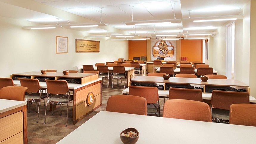 この教会の施設は、旧市街のボールパーク地区にある歴史的建造物を修復したものです。