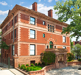 The Fraser Mansion Pennsylvania Room includes an historic fireplace of hand-carved yellow marble, supported by fluted Ionic columns and crowned by an ornate floral motif overmantel. It is one of the 14 fully restored fireplaces in the landmark home, each featuring a distinct variety of marble or granite with a unique and ornate mantel of wood or stone.