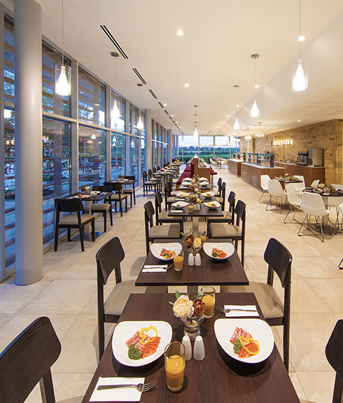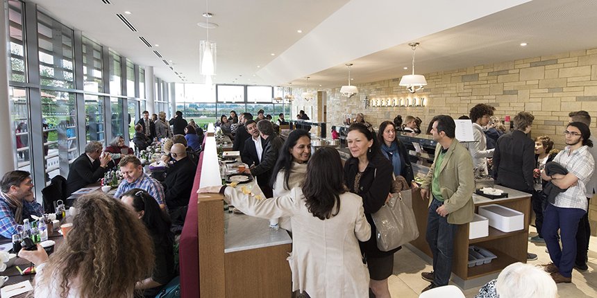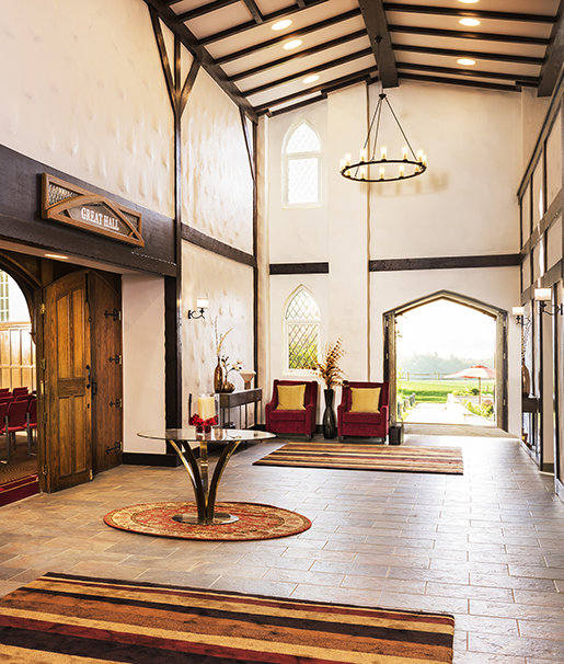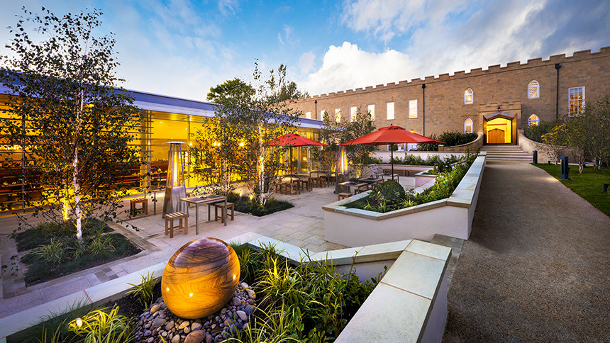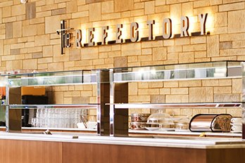 新設のセントヒル食堂はキャッスルに隣接。遮るもののない美しいサセックス州の田園風景が目を楽しませてくれます。 食事を楽しんだり、休憩をしたり、あるいはセントヒルでの多くの催しに出席する際の集会場所としても格好の場所です。