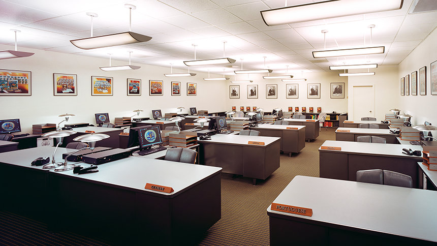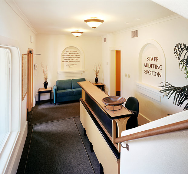 さらに、各国語による吹き替え録音専用のビルもあります。ここではサイエントロジーの宗教文献やその他の教会資料が翻訳され、録音されます。ずらりと並んだデジタルの録音スタジオは24時間フル稼働です。各国語の声優が、ハバード氏によるダイアネティックスとサイエントロジーの講演を吹き替えで録音します。主に15言語に対応しています。