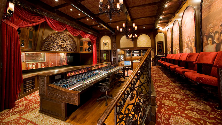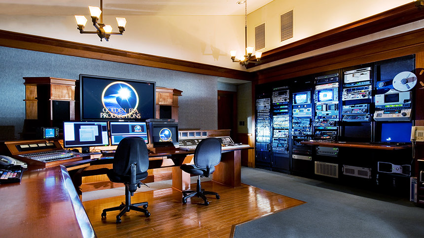 また、教会が使用するフィルムやビデオ用の音楽は、すべてのゴールデン・エラの録音スタジオ内で制作・編集されています。オーディオ部門の設備は、制作上のあらゆる必要性を満たすように設計されました。オーケストラ録音にも十分対応できる84トラックのスタジオや、5.1サラウンド映画用に112トラックのミキシングスタジオもあります。