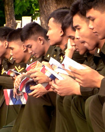 社会不安、騒乱、犯罪、暴力がはびこる地域では、そうした目に見える問題の根底に、このひとつの要因があります。道徳性の衰退、もしくは欠如です。 そこで、互いにいがみ合うグループ同士でさえ共感できる、良識に基づく道徳律を提供するのが「しあわせへの道」の配布です。