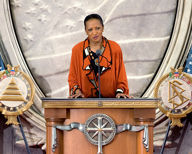 しかし、この日を本当の意味で忘れ難いものにしたのは、ミスキャベッジ氏が臨席し、スピーチしたことでした。ミスキャベッジ氏は、この国の首都におけるL. ロン ハバードとサイエントロジー教会の長きにわたる歴史について述べました。氏は、アメリカの歴史と文化とのつながりについて触れ、次のように述べました。「独立宣言には、すべての人は、生命、自由、幸福の追求を含め、奪うことのできない一定の権利を認められていると記されています。」