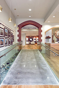 その超モダンな内部構造は、コンクリートを基調にガラスを組み合わせた洗練されたものです。 屋外には、8.5エーカーあるユーカリの森の中をブルーガム・クリークという小川が流れ、まさにシドニー大都市圏の中心にある、エデンの園です。