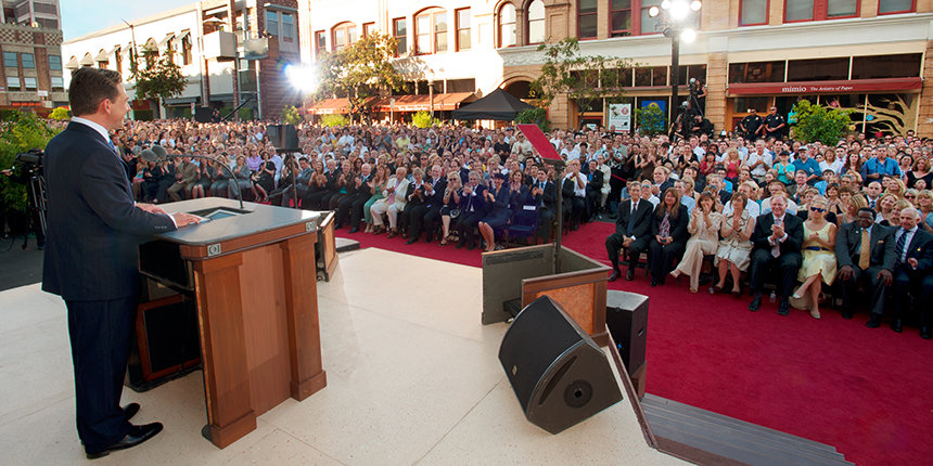 さらに、パサデナ商工会議所の会頭であるポール・リトル氏は、サイエントロジー教会が地域社会で果たしている役割について、次のように述べました。「皆さんの教会は商工会議所においても重要な役割を果たし、教会員の方々はこの街の全域で活躍しています。皆さんは常にこの地域社会にいて、毎年恒例のイベントに協力し、公益事業としてパサデナのアーティストを後援するとともに、それ自体が芸術的表現と人道支援の優れたお手本であるような社会福祉キャンペーンを展開しています。この街の住民に対する皆さんの献身、あらゆる領域で私たちの生活の質を高める皆さんの力、それこそがサイエントロジー教会の代名詞なのだということを知りました。」