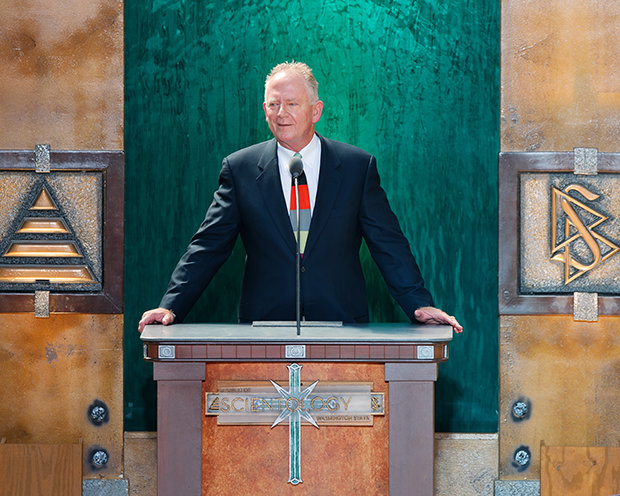 式典の主宰を務めた、リリジャス・テクノロジー・センター会長でサイエントロジー宗教の教会指導者であるデビッド・ミスキャベッジ氏は、この新しい教会を建設する運動を先導したサイエントロジストたちを称えました。