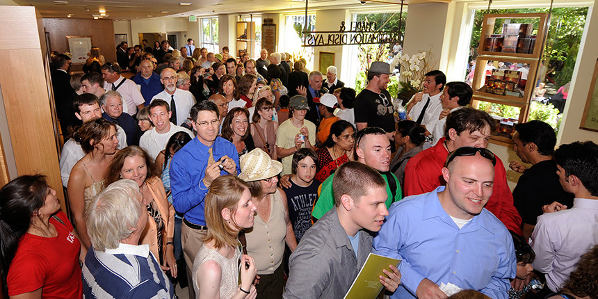 2010年7月24日、ワシントン州の新しいサイエントロジー教会の開幕式のために集まった1600人を超えるサイエントロジストとそのゲストが、シアトルのウェストハリソン300番地に面した通りを埋め尽くしました。54年の歴史を持つこの地の教会員たちにとって、記念すべき偉業でした。