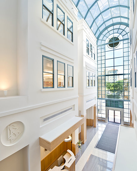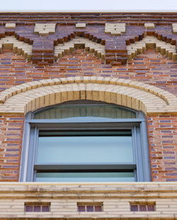 改修には細心の注意が払われ、独特なレンガ造りの正面壁、フランドル風の絞め模様や階上のアーチ型浮彫壁など、同ビル本来の特徴が保全されました。