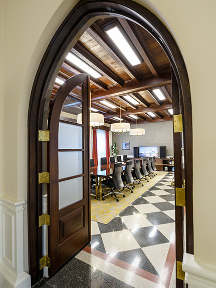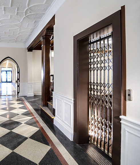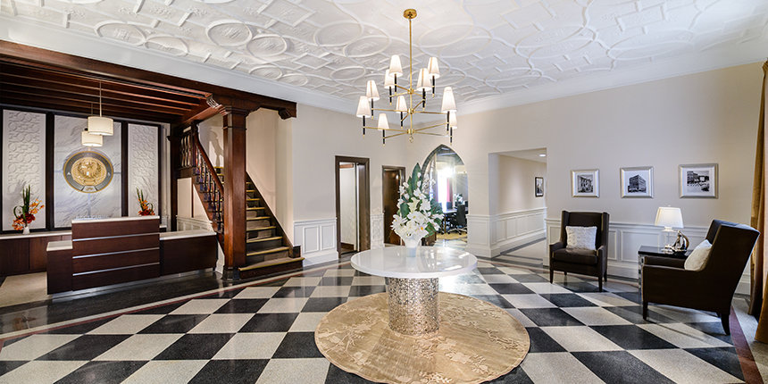 ウエスト・コースト・ビルの歴史的要素は、その独特の外観や装飾的な鉄製の花籠から、伝統的な12枚の小型ガラスからなる格子窓に至り、そして、本来のテラゾ材の床や、優雅なロビーの天井梁に使われているマホガニー材から、緑色のレンガ屋根や外壁に設置された日よけに至るまで細心に復元されました。