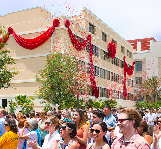 多くの人々がウエスト・コースト・ビルと、リー・アーノルド・ビルとして知られていたフラッグ・クルー管理運営ビルの落成式に参列し、2本のリボンカットが同時に行われました。