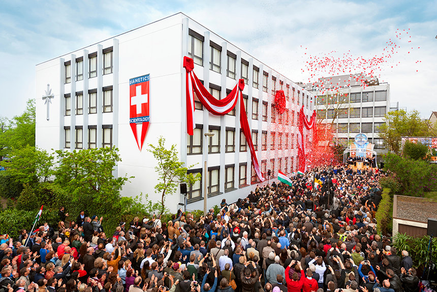 最新の理想のサイエントロジー教会はフランスとドイツの国境に接するスイスのライン川沿いにあります。 4月25日のグランド・オープニング式典のために、スイス国内だけでなくフランス、ドイツ、イタリアからサイエントロジストが集まりました。