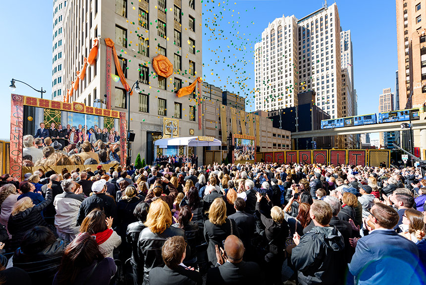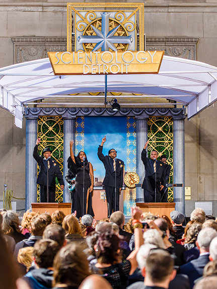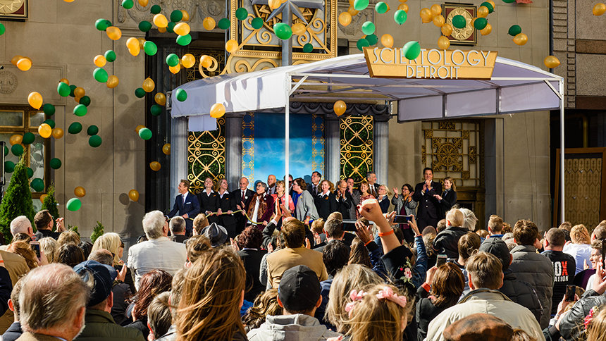 今日、「デトロイトを取り戻す」ための運動は勢い良く感染した誇りによって後押しされ、Scientology教会は、その活動に力を注いでいるエンジンの部品を響かせています。 1963年から存在するこの街、10月中旬の明るい秋のある日、2,000人以上の人がジェファーソン通りとグリスウォルド通り繁華街に集まり、輝かしい新しい教会を祝いました。