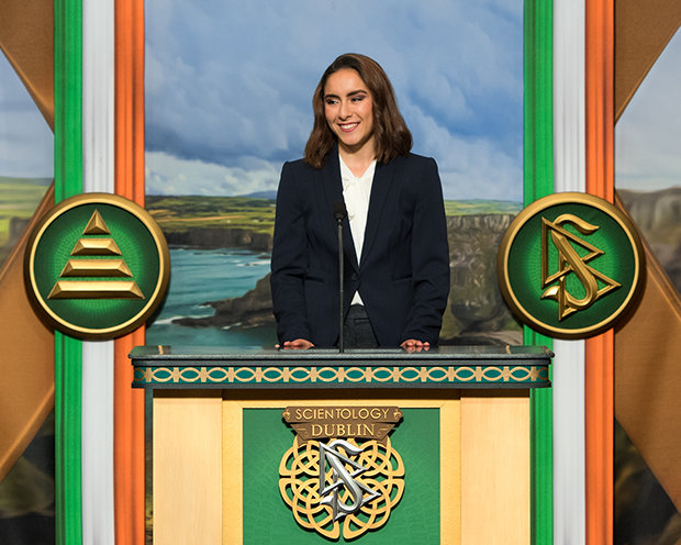 「アイルランドの永遠、アイルランドの超越性のためにあなたは文学を500年間存続させました。 皆さんはアメリカを築き、おそらくはそれを見付け出しもしました。 あなたは、人類の平等と、尊厳の不在の中で尊厳を持って生きる道を教えました。 そして、あなたがいる場所で、美しさほど、貴重なものはないと教えてくれました。 それゆえに、このダブリンの新しいサイエントロジー教会とコミュニティー・センターのオープンし、あなたとともにいることを私たちは誇りに思います。」