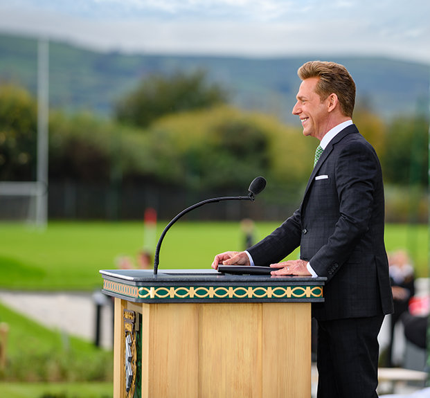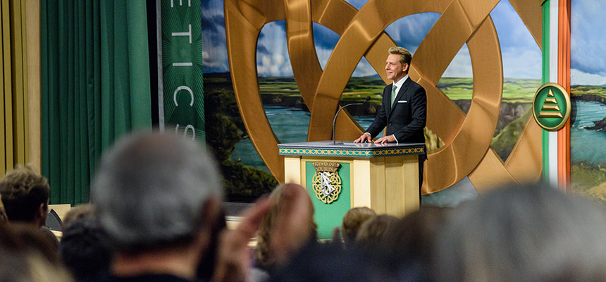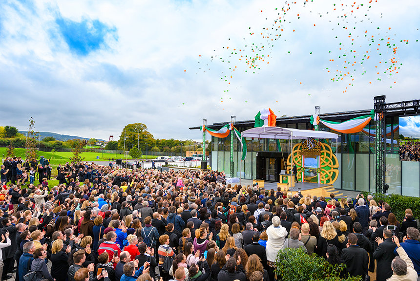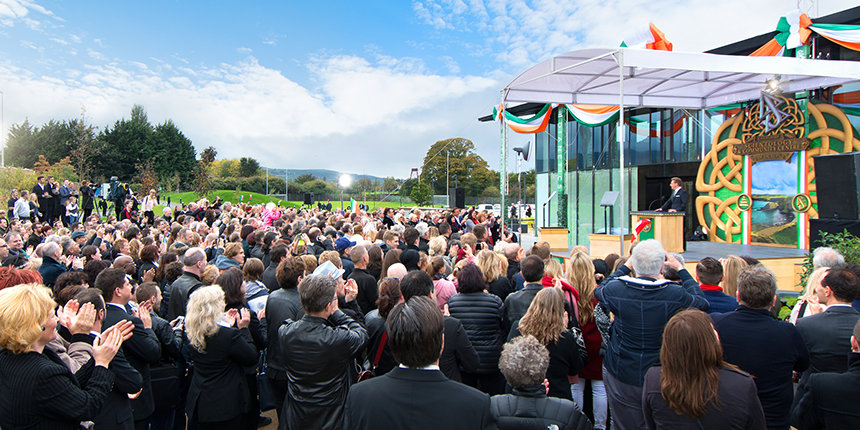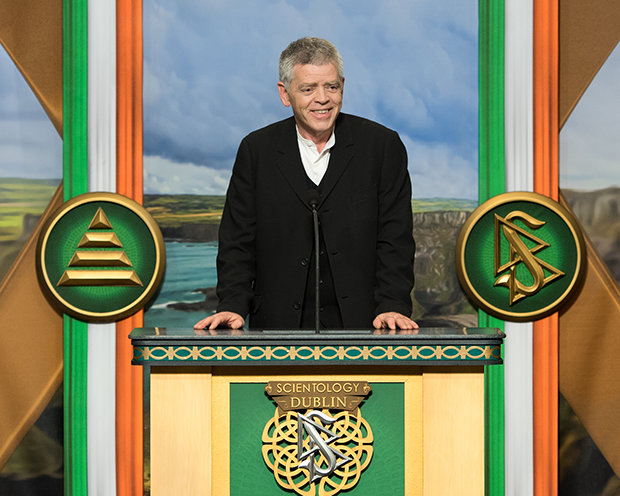 「今日、我々の創立者であるL. ロン ハバードが愛した土地、そして彼が、たとえ気候がそうでなかったとしても、素晴らしく暖かいと表現した人々を称え、その誓いを現実のものにします」サイエントロジー宗教の教会指導者であるリリジャス・テクノロジー・センター会長デビッド・ミスキャベッジ氏が、集まった聴衆に対して話しました。 「そして、それでは足りないのなら、皆さんのイェーツ氏の言葉を引用させてください。『幾度も人はふたつの永遠の間を生き、そして死にゆく……そして古代アイルランドはそれを知り尽くしていた。』」