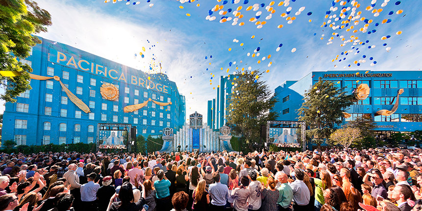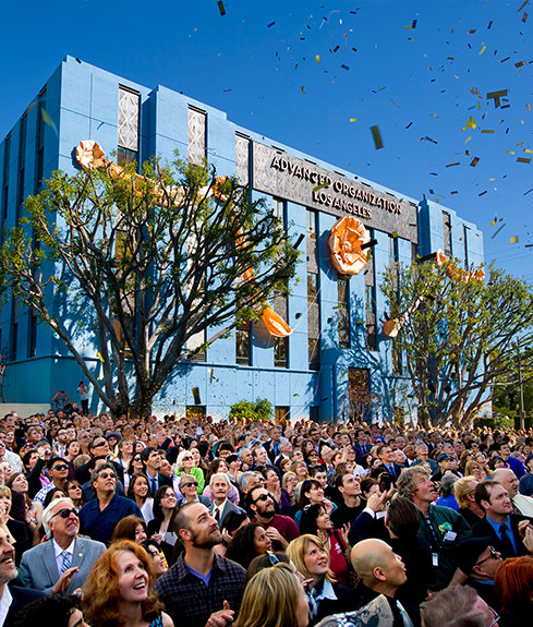 この機会の意義深さを強調するように、リリジャス・テクノロジー・センター会長のデビッド・ミスキャベッジ氏が落成式を執り行いました。 ミスキャベッジ氏は、参列したサイエントロジストたちへのスピーチで、以下のように述べました。「今日、私たちは『理想のパシフィカ・ブリッジ』というL. ロン ハバードのビジョンを実現します。それはロサンゼルスの、そして実際には全米のあらゆるサイエントロジストのためのものです。 なぜならここには、私たちの黄金時代においてあらゆる人が利用できるようになったブリッジを支える、現実の柱があるからです。完全なる精神的自由への上昇を具現化したブリッジ、この大通りの端から端までどころか、永遠そのものへと続くブリッジです。」