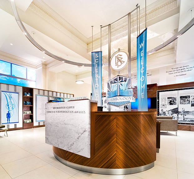 人々を出迎える入り口は、さらにハリウッド大通りの「ウォーク・オブ・フェイム」に面した、新しい理想のサイエントロジー情報センターにまで及んでいます。 LAはサイエントロジストの地上最大の密集地なので、現在このセンターで提供しているこの宗教の入門サービスは、決定版と言えるものです。 ここには、サイエントロジーの信条と実践を紹介する300本以上のフィルムが、17の言語で用意されています。 さらに何十もの入門コースとセミナーを提供し、訪問者が「自分で発見できる」ようにします。