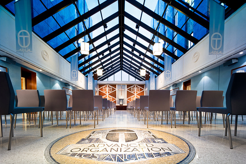 L. ロン ハバード通りに沿って、いわばパシフィカ・ブリッジの頂点に位置するのが、新しい理想のモデル上級オーガニゼーション・ロサンゼルス(AOLA)です。 ここでサイエントロジストたちは、OTやより高い状態の精神的意識への旅に乗り出します。 まさにそのために、AOLAには何百人ものソロ・オーディターをトレーニングできるように拡張されたコースルームがあります。ソロ技術部門は上級コースのソロ・オーディターのみにサービスします。OTのためのオーディテッド・ニュー エラ ダイアネティックスでさらに高い領域を横断する人々のために、3つの完全なハバード・ガイダンス・センターがあります。
