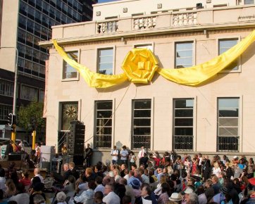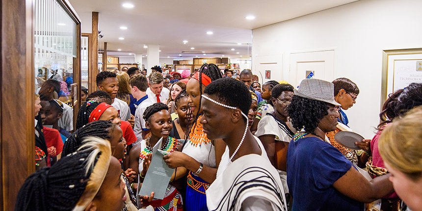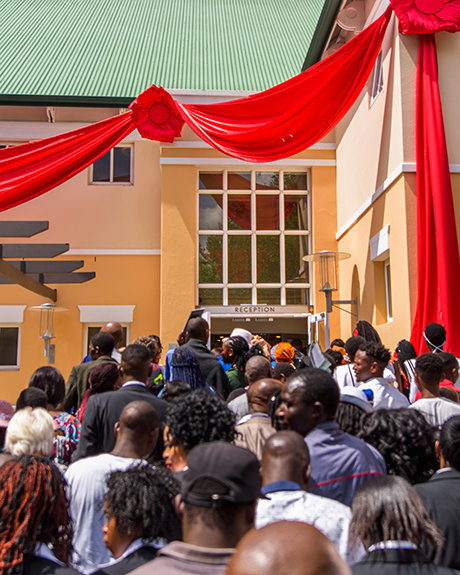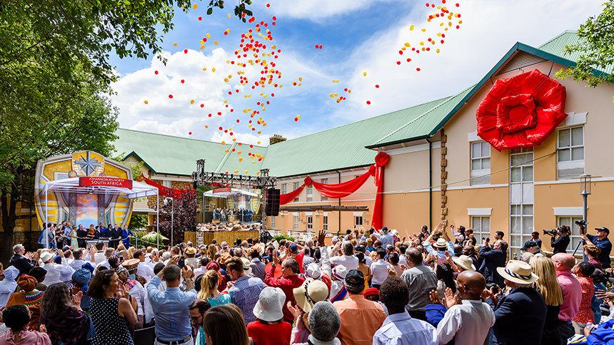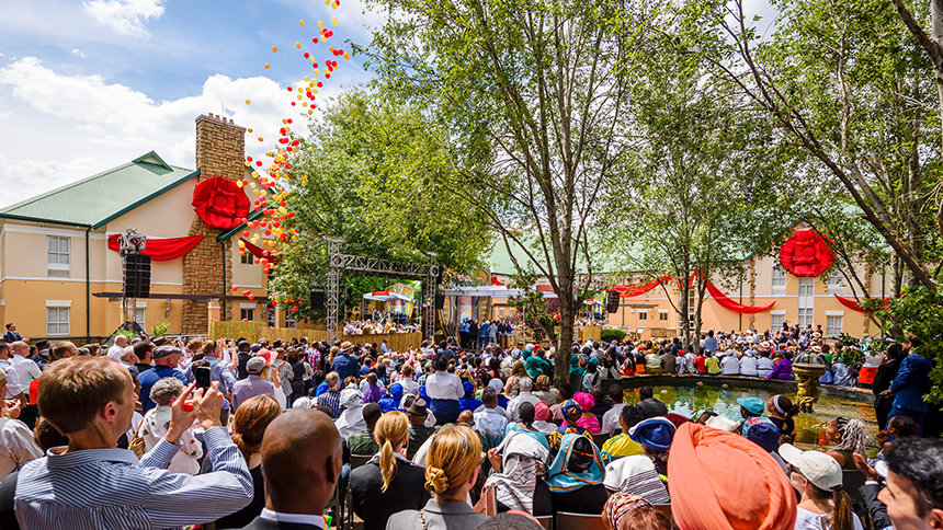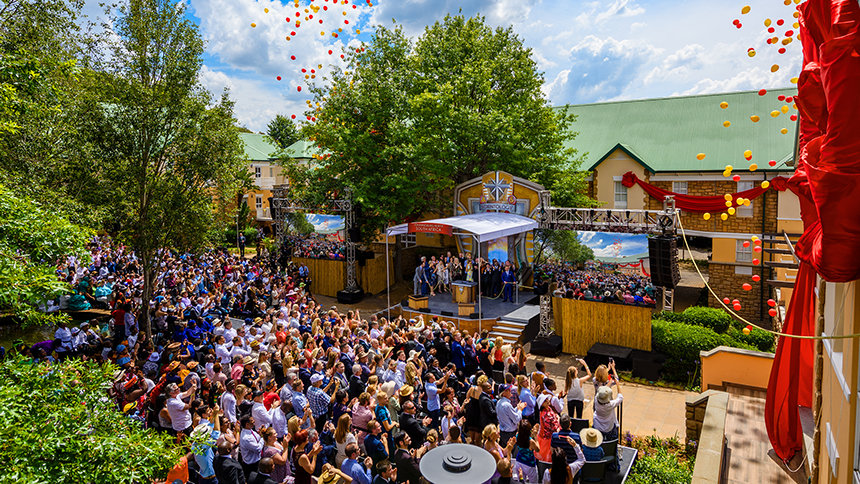 グランド・オープニング式典に、伝統的なダンサー、地域の聖歌隊のメロディーと調和したアフリカンドラムの魔法のような響きによる、創造性と力強い表現がアクセントとして添えられました。 祝典はすぐにヨハネスブルグとハウテン中から参加した来賓のコーラスへと発展。そして、教会を歓迎し、明るい未来のとして、巨大な赤いリボンがカットされました。