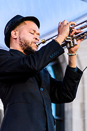 ビーバップの即興のジャズ形態へと高まる強烈なスウィングのリズムで、元気いっぱいの聴衆のエネルギーを方向付けひとつにし、式典は最初のコードから湧き返りました。 オープニング演奏のブルースのスタンダード「レスター・リープス・イン」は「カンザスシティー...ヒア・アイ・カム」のファンク・リフレインへと融合し、式典は、教会の歴史的な新しい拠点の到来を告げる社会的指導者そして政府高官へと続いていきました。