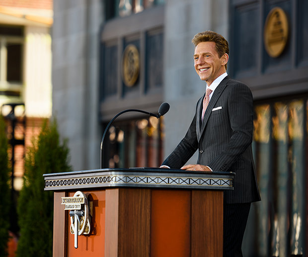 Scientology宗教の教会指導者、デビッド・ミスキャベッジ氏が、その落成式を執り行いました。 オープニングのスピーチでミスキャベッジ氏は、新しい教会の中西部の拠点を祝って、その日の陽気な精神を強調しました。「カンザスシティー、そこはよく言われるように、人々は、50の州で最も純粋な『アメリカ語』を話し、バーベキューはどこかの美食銀河で得られるほど美味しい。 またそこは、『倫理』がその意味を失う前の『労働倫理』が今でも存在しているところです。 ですから、そうです。カンザスシティーです!」