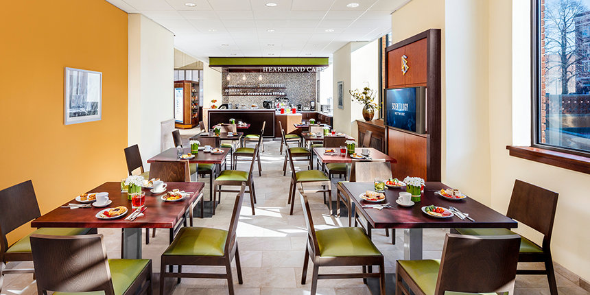 カフェは、教会を見学する訪問者、さまざまなイベントの参加者、または教会員のScientologyサービスの間の休憩場所を提供します。