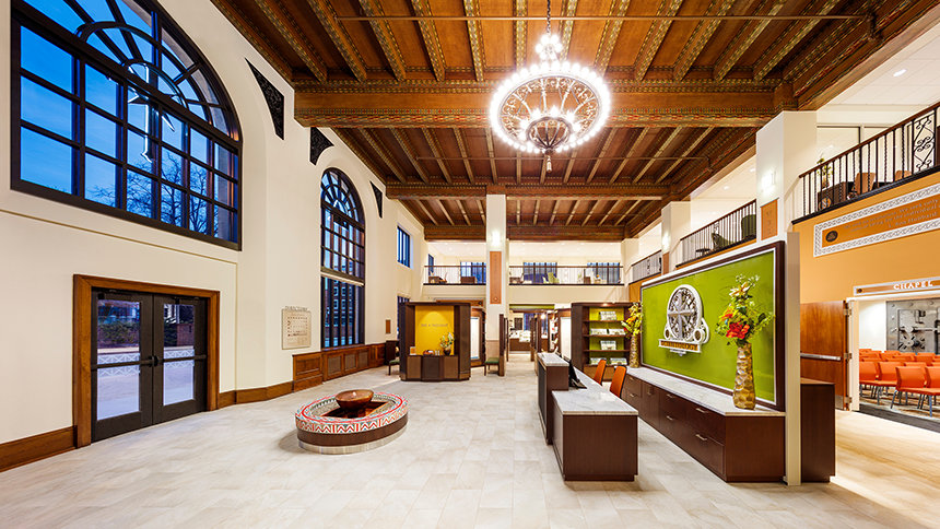 1926年に建てられ、見事に復元された施設は、街の歴史的建造物で、国の重要な歴史遺産として登録されています。 アメリカのボザール様式がデザインの中心で、壮大な左右対称の外観は19世紀初期建築物の典型で、今日でもアメリカの都市を定義づけるものです。 中心を飾るのは疑いもなく、2階まで吹き抜けの1階のロビーです。5種類の独自の大理石が飾られ、アステカ風のデザインが手描きされた天井の梁、そして多くの部分が真鍮と鉄で鍛造せれているシャンデリア…それは、地域社会を高揚させることに完全に専念している教会を豪華に歓迎するものです。