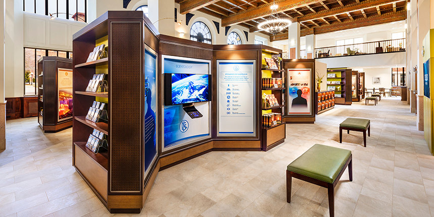 カンザスシティーの新しいScientology教会に入ると、訪問者はDianeticsとScientologyを紹介するパブリック情報センターに迎えられます。 そのディスプレーには、17ヵ国語のフィルムが500以上も内蔵され、Scientology宗教の信条と実践、そして創設者L. ロン ハバードの生涯と遺産について説明します。