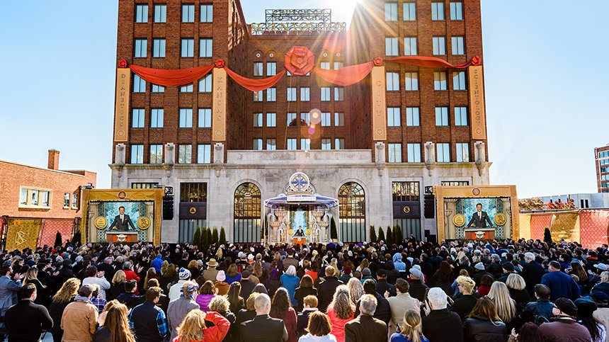 芸術地区の副代表ジェフ・オーウェンス氏は、すべての中心地に新しい拠点を復活させる教会の活動を称えました。「その通りです。みなさんの拠点は、芸術地区の中心に建っています。 しかし、みなさんはその区別を当たり前のこととは考えませんでした。 みなさんがやって来て、この貴重な歴史的建造物を復元され、このように宣言しました。『芸術に境界線はありません...私たちはまさにここに、傑作を創ります。』 えぇ、壮大な入り口に足を踏み入れ、みなさんが行なわれたことを目にし、ただ驚きました。 それはカンザスシティーのアメリカーナの見事な保存です。 つまり、みなさんの拠点は地域社会としての私たちの家の個性を反映しているのです。」