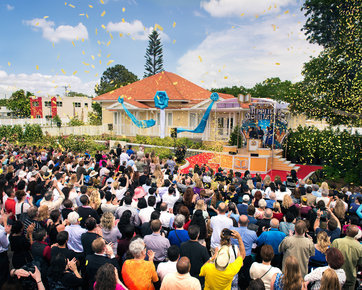 オーランドのテーマ・パーク・アベニュー、インターナショナル・ドライブからたった数分の所に、教会の銀河系の星間で輝いている、最新の「輝く星」が見えます。 フロリダの内陸の都市の中心、エレノア湖の岸辺の約4エーカーという広々とした敷地にその施設が広がります。 この魔法がかけられた場所では、笑いと想像が絶えることはありません。そこに2,000人を超えるサイエントロジストと友人たちが、新しいサイエントロジー教会のグランド・オープニングを祝うために5月12日の土曜日、昼間太陽の下、中央フロリダに集まりました。