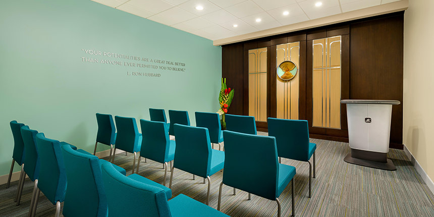 オーランドの新しいチャペルは、日曜サービス、結婚式、命名式といったサイエントロジーの集会の会場となります。 また、晩餐会、セミナーやワークショップといった地域ぐるみのイベントにも使われ、どんな宗派の人々でも歓迎しています。