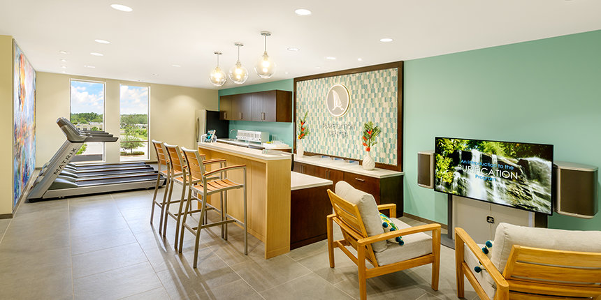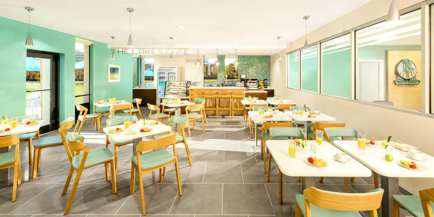屋内と屋外の両方に用意された上品なレイク・カフェは、イベントの出席者に集いの場所を提供し、サイエントロジーのサービスを受けに来た人に憩いの場所を与えます。
