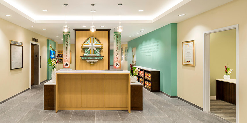4階建ての新しいサイエントロジー教会オーランドに向かって行った訪問者と教会員が最初に目にしたのは、20世紀半ばの外観です。 入り口を入ると、訪問者は、太陽が降り注ぐフロリダの周囲からヒントを得た、明るく現代的な空間に足を踏み入れます。 明るい青緑色、砂色とグレーのトーンは、ダイアネティックスとサイエントロジーへ紹介されるパブリック情報センターに静穏な感じをもたらします。 いくつものディスプレーには、17ヵ国語のフィルムが500以上も内蔵され、サイエントロジー宗教の信条と実践、そして創設者L. ロン ハバードの生涯と遺産について説明します。