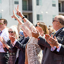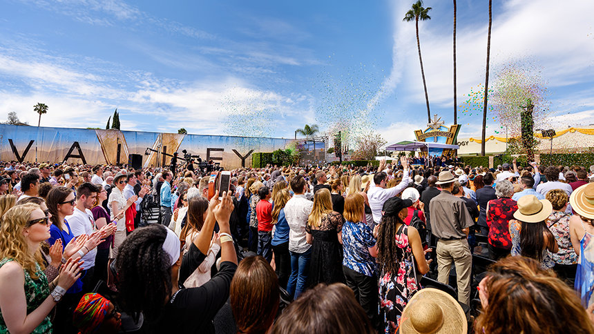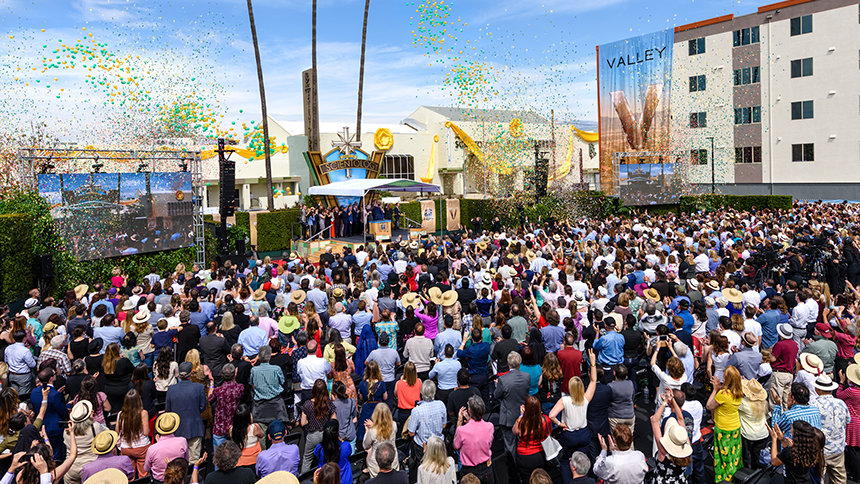 こうして、3月19日、日曜午後1時、5,000人以上のサイエントロジストが集い、北アメリカで最大のサイエントロジー理想の教会の幕開けを祝いました。 その規模と内容においてバレーの新しい家にふさわしく、式典は映画の黄金時代を呼び起こす映画音楽のメドレーで始まり、この日のために特別に書き下ろされた曲「VはバレーのV」の賛歌へと続きました。 歓喜の祝典では、教会がもたらす社会へのより大きなインパクトに対して熱のこもった賛辞を送る来賓の方々に、何千人もの出席者たちは何度も立ち上がり、大きな喝采を送りました。