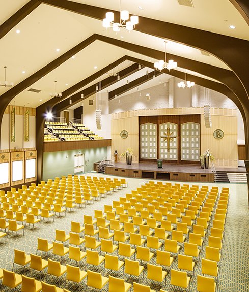 この巨大なバレーの新しいサイエントロジー教会にあるチャペルの収容人数は千人以上で、サイエントロジーの教会員たちに、日曜サービスや結婚式、命名式といった儀式を提供することができます。 また、地域ぐるみのイベントにも使われ、どのような宗派の人々でも歓迎します。 さらに、この教会には多様なセミナールームやコースルーム、そして、ひとつの建物全体がサイエントロジーの「オーディティング」と呼ばれる精神カウンセリング専用の施設となっています。