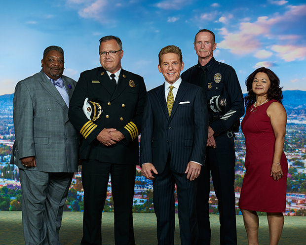 その献身に焦点を当てたのは、教会を歓迎するサンフェルナンド・バレー地区を代表する方々、ロサンゼルス市警察バレー担当副主任ロバート・グリーン氏、ロサンゼルス消防署バレー担当副署長トレバー・リッチモンド氏、ロサンゼルス教育プログラム・ディレクターのネリー・バリエントス女史、そしてロサンゼルス郡聖職者評議会、業務執行役員フランクリン・ハリス司教です。