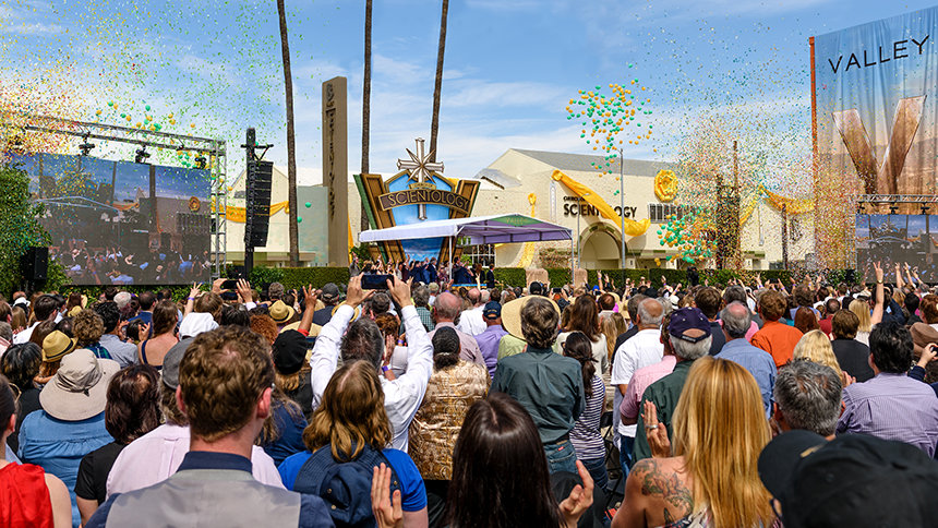 「今日、私たちはこの夢のバレーのために、ひとつのサイエントロジー教会を捧げます。」サイエントロジー宗教の教会指導者であるデビッド・ミスキャベッジ氏は出席者に語り掛けます。 「サンフェルナンド・バレーは多様な地域です。私たちの助けもそうです。 ですから、私たちは多種多様な文化、民族、そして経済的地位を持つ人々を歓迎します。 この点について、この教会はサイエントロジーの信条、『すべての人間は、いかなる民族、肌の色、信条であろうと、平等な権利を与えられて創造されたこと、 …人間の魂が人間の権利を持っていること』を完全に反映したものです。」