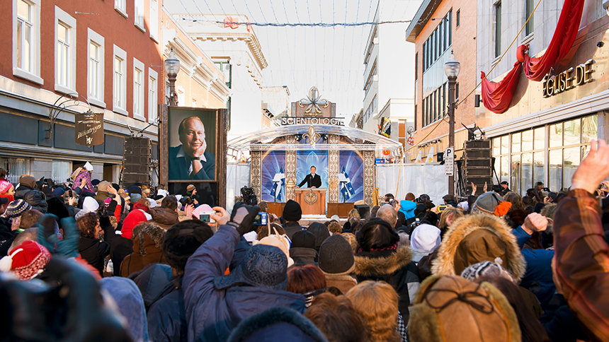 2010年1月30日、サイエントロジー教会ケベックのオープニングに出席するためにカナダとアメリカ合衆国各地から集まった1500名のサイエントロジストとゲストが、ケベック市旧市街ヌーボ・サンロッシュ地区の中心部、サンジョセフ通り665番地の前を埋め尽くしました。