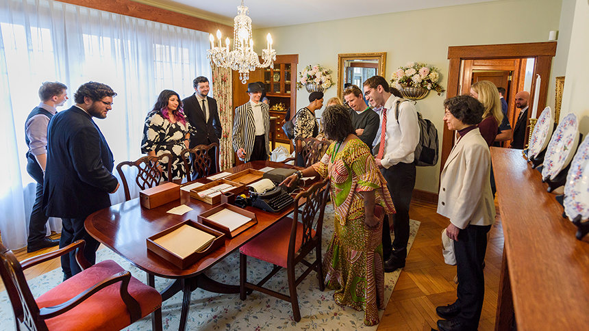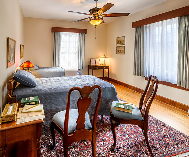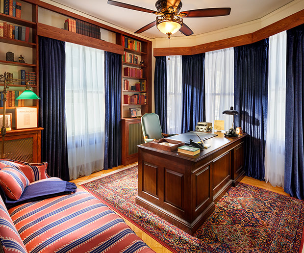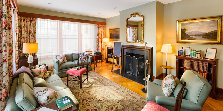 この普遍的な影響の場所は、かつてのように建っています—オリジナルの家具、ビンテージの水晶のドアノブ、そしてマホガニーのケルト模様の象嵌が施された改築された木の床が完備されています。 ハバード氏がかつて書きものをしていた机や、集っていた学生たちの前にあった暖炉を含め、全てがその輝かしい過去を取り戻しました。