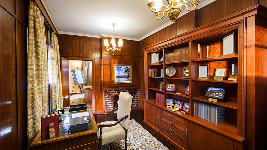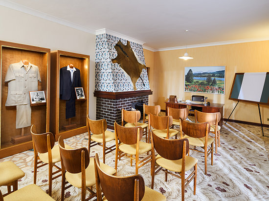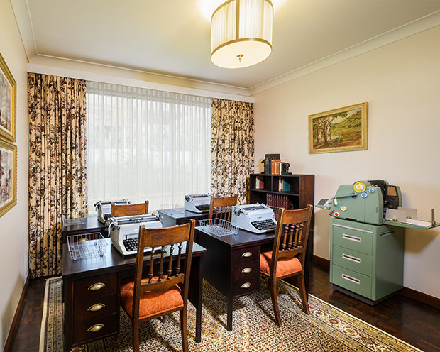 今日、この英国植民地時代の建物は、ハバード氏の時代と同じように、細部に至るまで修復されました。 壁紙、キャビネット、照明器具は、記録写真と照合されています。 アートワークが復元されました。 ハバード氏がタイピストのチームに提供したのと同じタイプライターが、忠実に保存されています。 展示されている他の品々には、彼が伝説的なクリアリング・コース講演を撮影していたときに着ていたスーツや、イギリスに戻る際に使ったスーツケースさえも含まれています。
