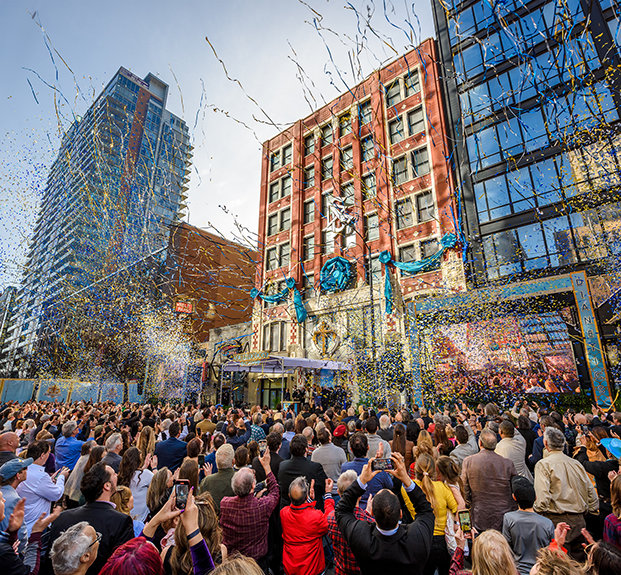 何千もの人々が、活性化され生まれ変わったサウスループの歴史的建造物、すべての人々に希望と助けを提供するビルのグランド・オープニングを祝います。