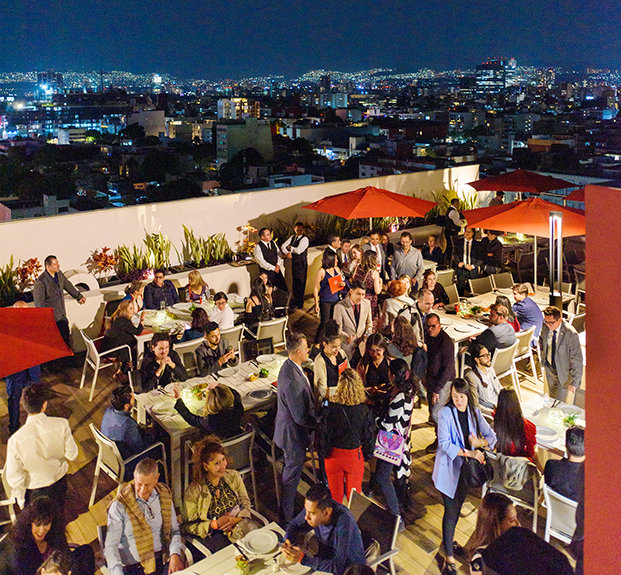 メキシコシティの夜空が、デル・バイエのためのScientology教会のオープニングでライトアップ