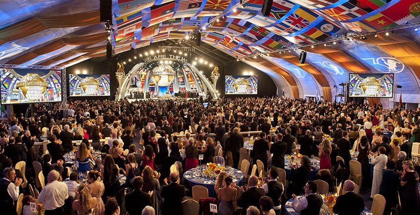 翌日10月18日の夜2,000人以上のサイエントロジストがエレガントでゴージャスなIASパトロン晩餐会のためにグランド・マーキーへ集まりました。ここで、最近パトロンになったばかりの人たちが、よりよい世界へ向かうサイエントロジーの目標を推し進める人道主義活動を前進させたその貢献により称えられました。