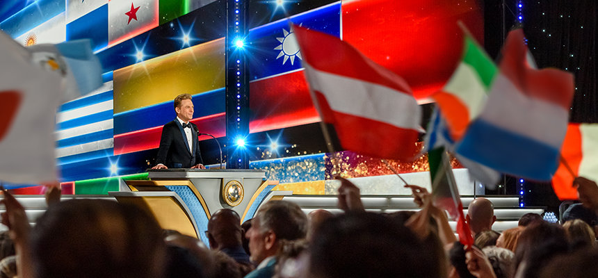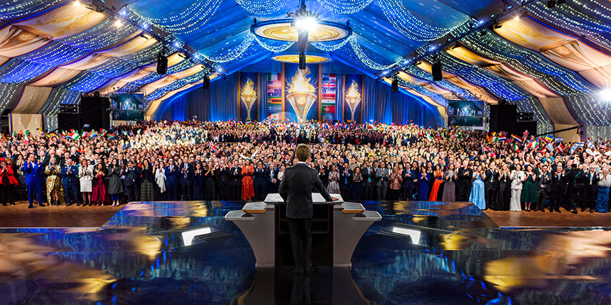 土曜日の夜、グランド・マーキーは、毎年恒例のIASパトロン晩餐会の会場として、輝かしく生まれ変わりました。 正装した59ヵ国からのIASメンバーが、IASの人道支援運動を推進するための彼らの弛みない献身を称えられました。 この夜はさらに意義深いものとなりました。セントヒルでの前回のパトロン晩餐会から4年後、ほぼ5,000人のサイエントロジストがIASのパトロンとなりました。史上最高です。