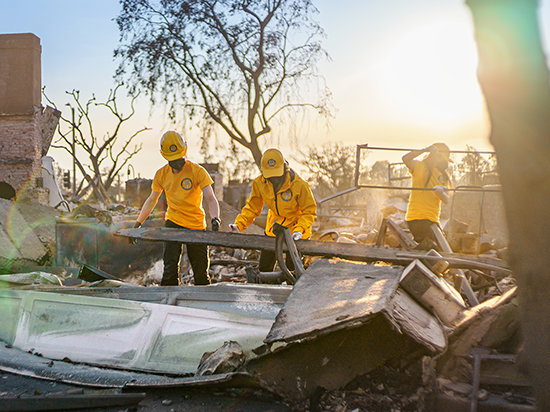 アメリカの地で史上最大のVM部隊、約2,500人のボランティア・ミニスターたちが、ロサンゼルスで発生した歴史的な山火事に対応。 炎は数日間にわたり、太平洋の海岸線から山々にかけて燃え広がり、パリの2倍の面積を焼き払い、広範囲にわたる避難を引き起こしました。 VMたちは、1日で約1万人、合計で10万人以上のロサンゼルス市民を支援しました。彼らは、緊急救助隊に対して、ロジスティクス、食料、精神的な援助を提供し、70以上の緊急対応機関からの要請に応えました。
