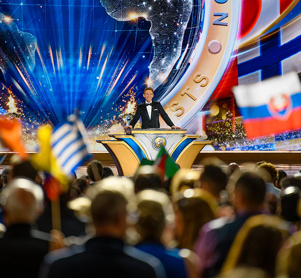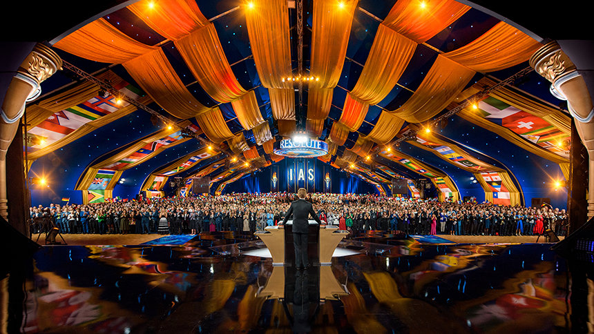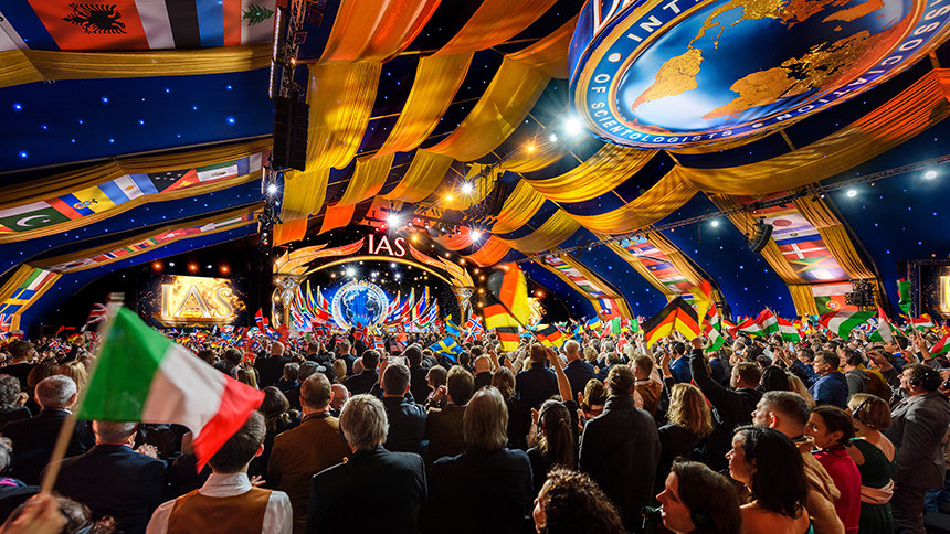 優雅さと壮麗さがこの祝典を彩ります。IASのメンバーたちが、Scientologyの創始者L. ロン ハバード の歴史的なウェスト・サセックスの邸宅、セントヒルに、6大陸から集結します。 群衆はレッド・カーペットの上を滑るように進み、世界中のフラッグが高く掲げられ、心が躍る中、ステージに目を向けながら、歓喜に満ちた期待を胸にグランド・マーキーに入ります。