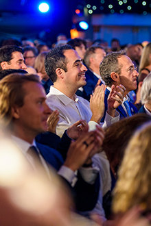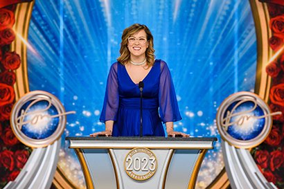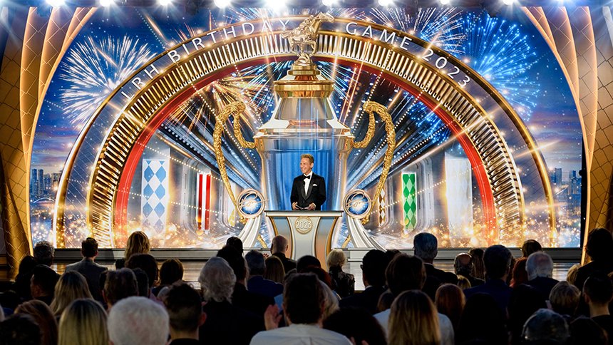 そしてLRHバースデー・ゲームのチャンピオンを発表する瞬間となりました。 ステージは、輝く光、レーシングシルク、輝くトロフィーが完備され、バラの花が枠を飾るウィナーズ・サークルへと変身しました。 バースデー・ゲームは、すべてのScientology教会における拡張という贈り物で、ハバード氏を称える伝統を受け継いでいます。